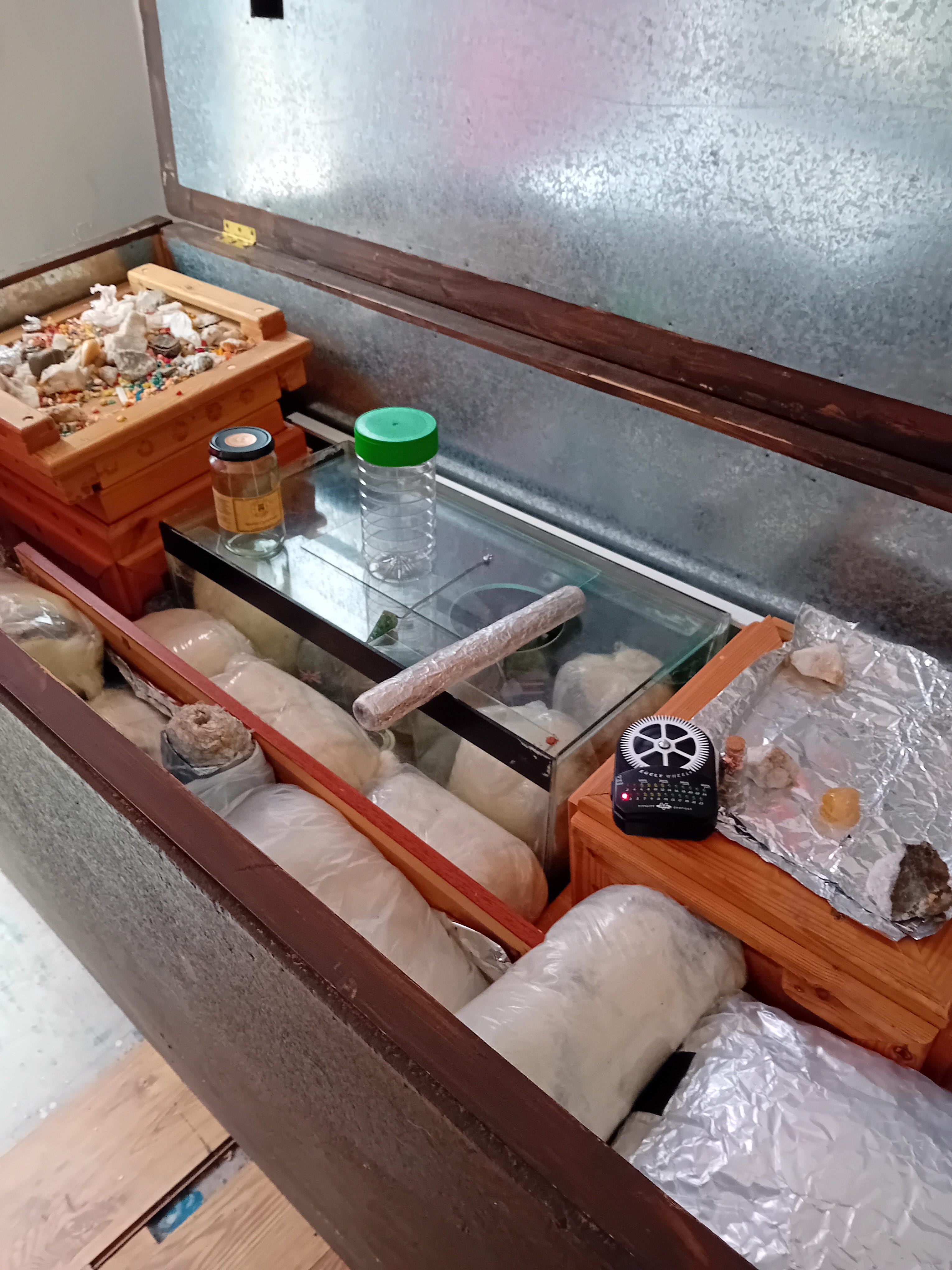I’ve set up an ‘energy concentration’ point within the box using orgone tubes (basically an orgone acupuncture tube as developed by Prof. Bernd Senf, in the late 1980s, the first person to use orgone-acupuncture practically).
