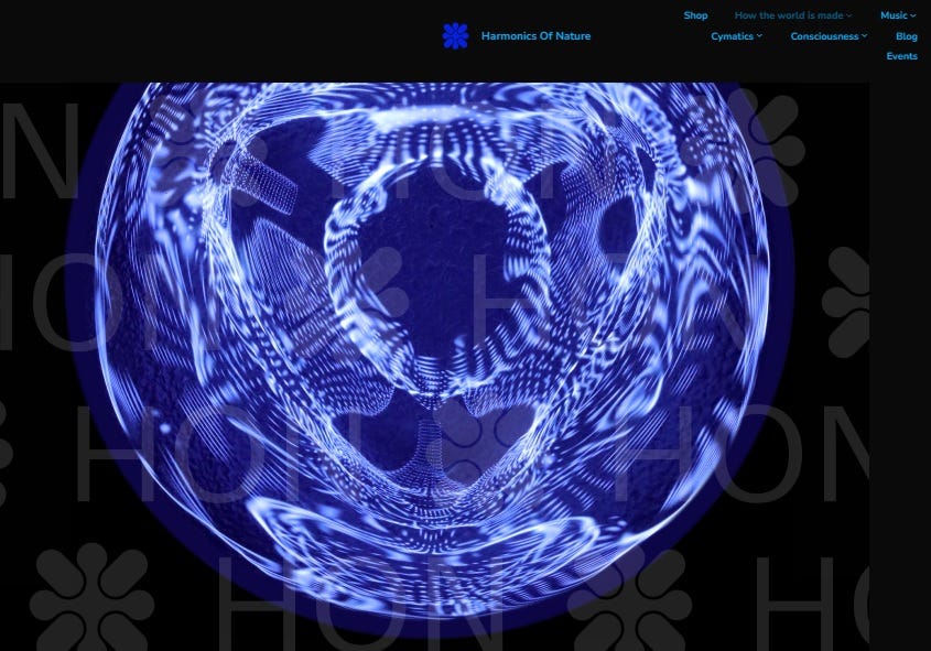 This is a website that researches sound and harmonic shapes that are naturally occurring. Included are cymatics pictures, naturalised earth frequencies and cosmic frequencies presented as sounds. Creative music, consciousness experiences and information such as about the ancient Hebrew second which is 3.33 modern seconds is also presented.