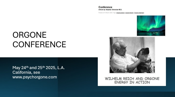 I’ve not written much recently as I’ve been preparing for a conference in the USA. The first conference on orgone energy in many years. Put together by the Journal of Psychiatric Orgone Therapy and to be held in California this May.